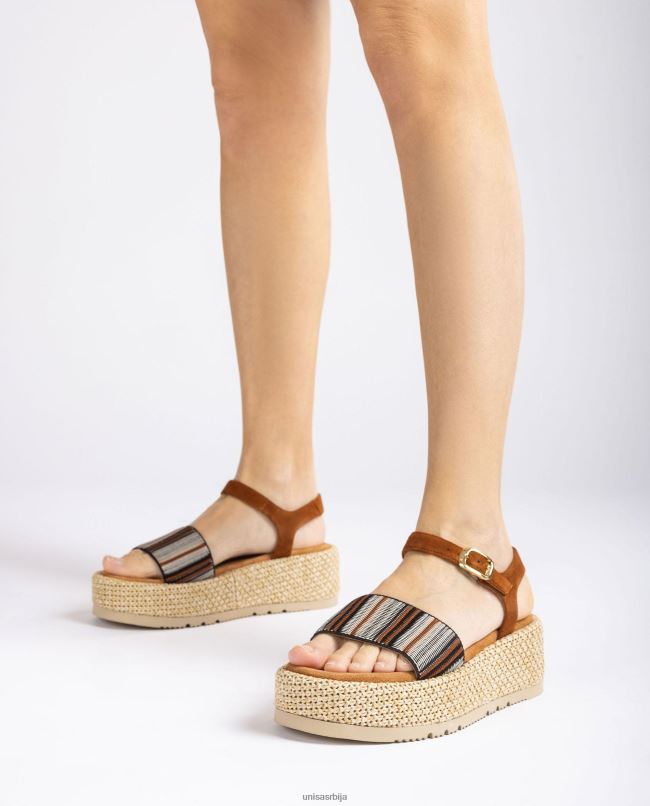 Unisa Жене браон сандале са широким разнобојним ременом T6V60102