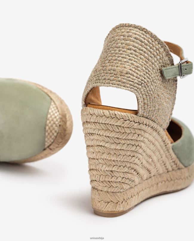 Početna| ципеле| еспадриле| Unisa Жене зелен еспадрила од антилопа са потпетицом од рафије T6V60484