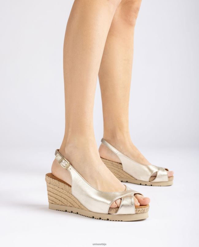 <спан>Еспадрила са округлим прстима направљена од коже са металик ефектом. укрштене каишеве на предњој страни и каиш за глежањ који се може подесити помоћу металне копче. Клин висине 7 цм прекривен природном јутом и платформа од 2,5 цм. ева ђон који је лакши и флексибилнији него икада пре захваљујући суперлигхт технологији. наша нова колекција јуте ће вас изненадити.спан>