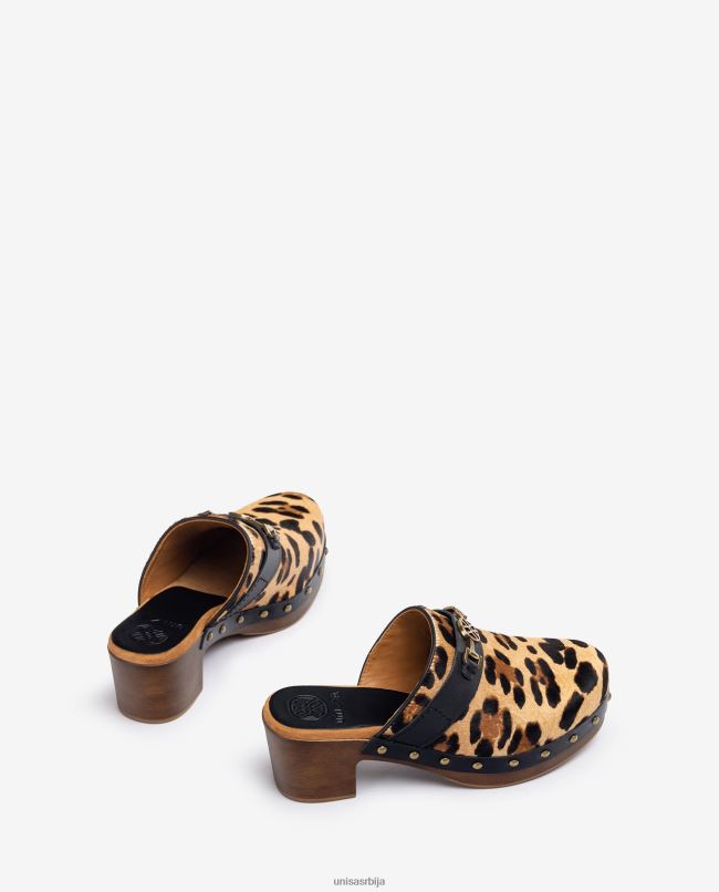 <спан>Кломпа од крзнене коже са леопардовим принтом. обруб монограма. веома лагани блок са ефектом дрвета са петом од 5,5 цм и платформом од 3 цм.спан>