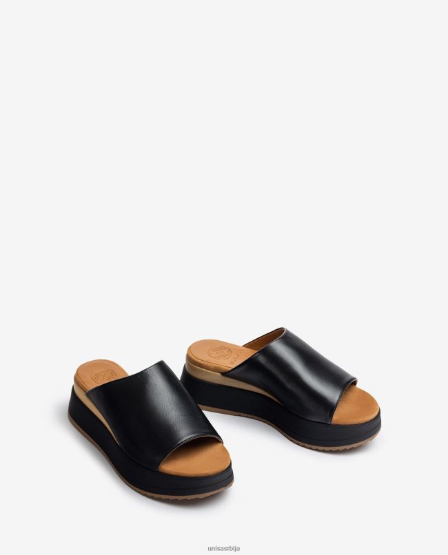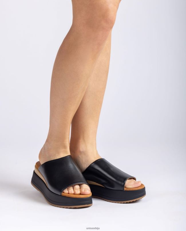 Unisa Жене црн сандала са клин петом и широким вамп T6V60827