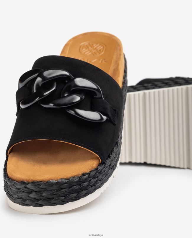 <спан>сандале у стилу мазге, са потпетицом од 5 цм прекривене плетеницом од антилоп и јуте. одговарајући ланац здепастог карика на вампу. лаган и флексибилан неклизајући гумени ђон. мултифункционални и удобни клинови који су савршени за креирање веома личног стила.спан>