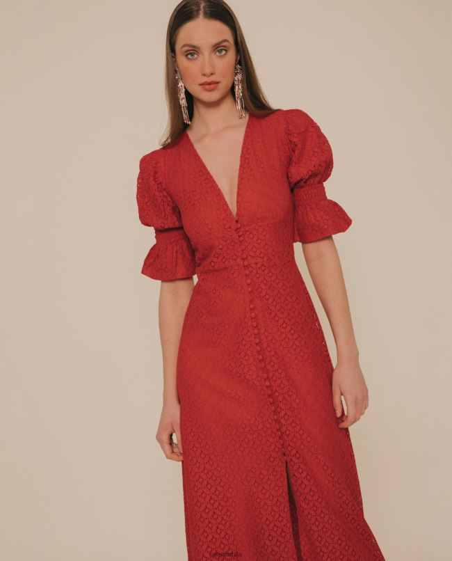 Unisa Жене црвена нијансирана чипкаста миди хаљина T6V601258