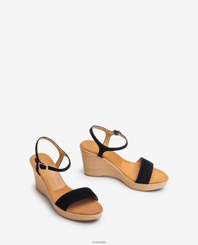 Početna| ципеле| сандале на клин| Unisa Жене црн антилоп сандале са блоком T6V60248