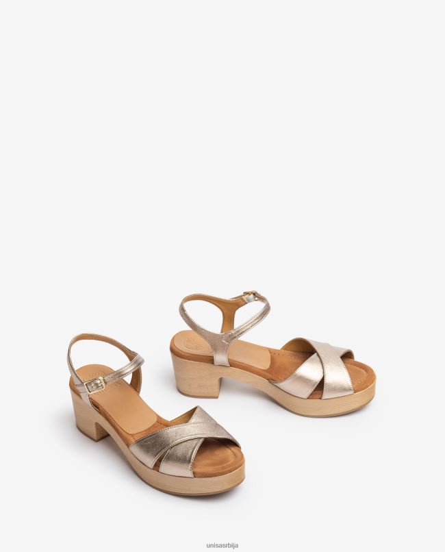 <спан>сандале са округлим прстима од коже са металик ефектом. каиш за глежањ који се може подесити помоћу металне копче и укрштених каишева на предњој страни. лагана блок потпетица висине 5,5 цм и платформа са ефектом дрвета од 3 цм. лаган, неклизајући, гумени ђон. униса есенција у свом чистом стању.