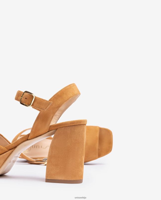Unisa Жене браон антилоп сандале са широком потпетицом T6V6066