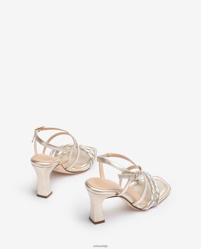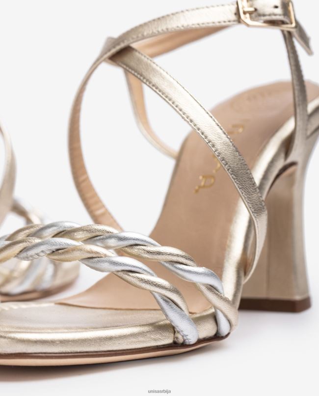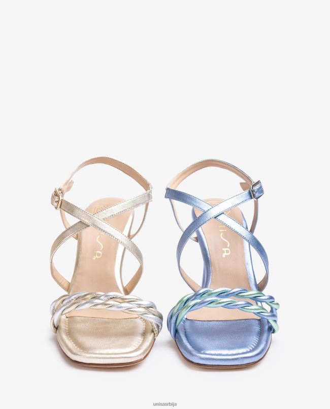 <спан>Сандале са квадратним прстима од металик коже. цевасте спиралне траке контрастне боје на предњој страни. Потпетица у одговарајућој боји висине 9 цм и кожни ђон. дебља пена на целом ђону за вашу удобност. подесиви каиш за глежањ са металном копчом. луксузне ручне обраде.спан>