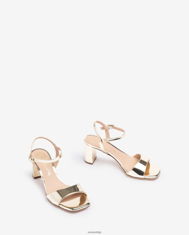 <спан>сандале од кожне тканине са ефектом огледала. каиш за глежањ који се може подесити помоћу металне копче. квадратни ђон пресвучен кожом одговарајуће боје и потпетицом ширине 6 цм. неклизајући кожни потплат.спан>