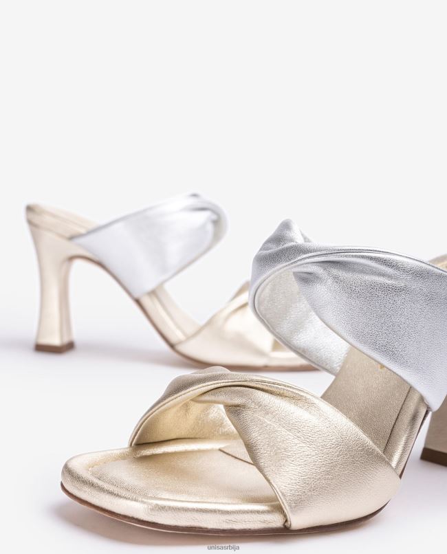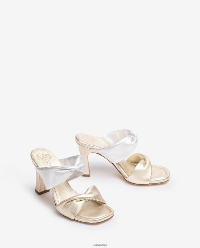<спан>Сандале са квадратним прстима од коже са металик ефектом. одговарајући широки упредени каишеви на вампу и предњем делу. 8 цм одговарајућа квадратна потпетица. кожни ђон.спан>