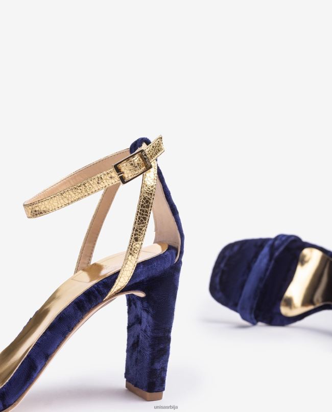 Сандале са квадратним ђоном направљене од сомота. танке златне траке за глежњеве које се могу подесити помоћу металне копче. Потпетица висине 8,5 цм обложена сомотом. кожни ђон. нова колекција униса би цхерубина очараће вас својим савршенством. <бр><бр><стронг>униса би цхерубинастронг> је наша капсулна колекција креирана заједно са брендом невесте и гостију цхерубина. дозволите да будете очарани његовим дизајном. <бр><бр>заокружите свој изглед овде.спан>