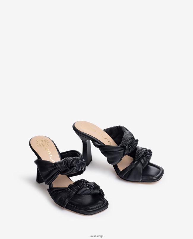 Početna| ципеле| сандале са потпетицом| Unisa Жене црн кожне сандале са чворовима T6V60301