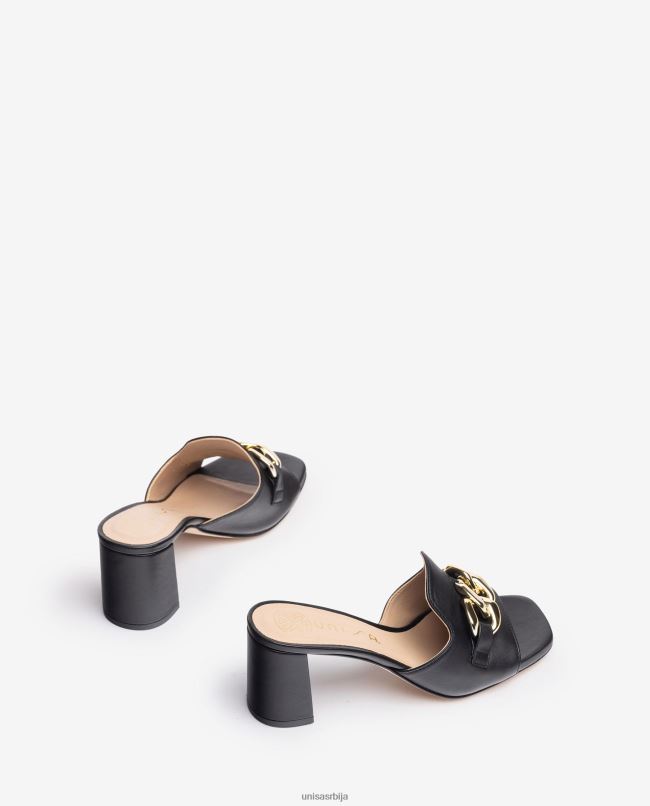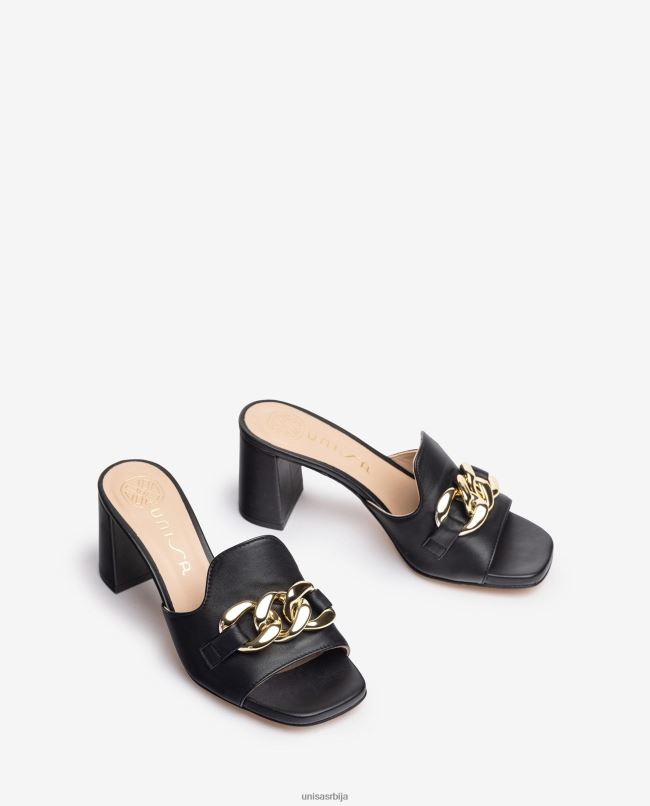 <спан>Сандале од мазге са четвртастим прстима од коже. широки вамп са обојеним металним ефектом ланца. штикла одговарајућег тона 6,5 цм. кожни ђон. направљен у шпанском дизајну који ће импресионирати све.спан>