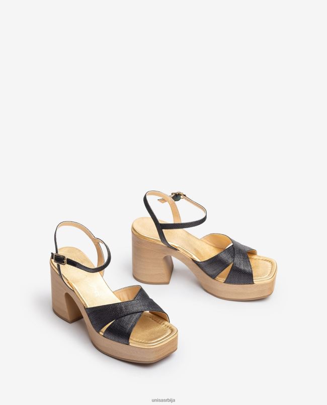 Unisa Жене црн сандала од рафије са блок потпетицом T6V6071