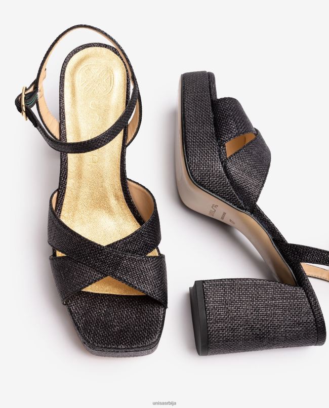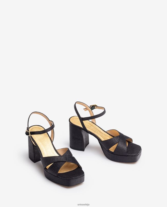 Unisa Жене црн сандале са широком потпетицом T6V6069
