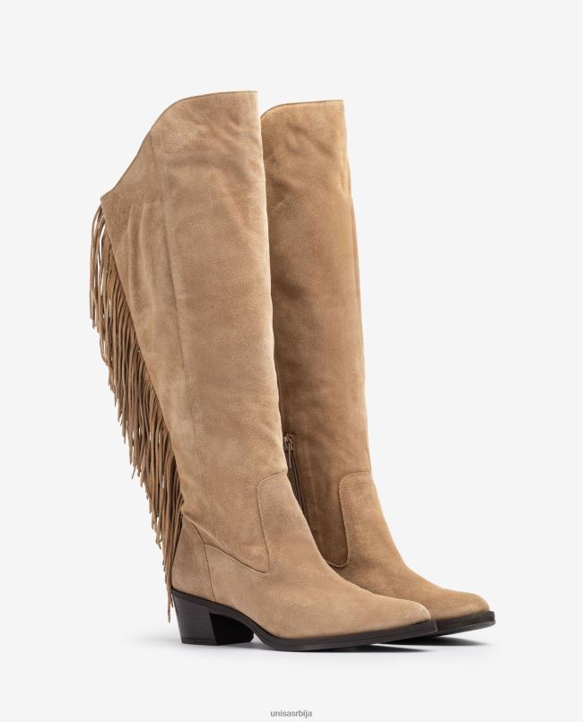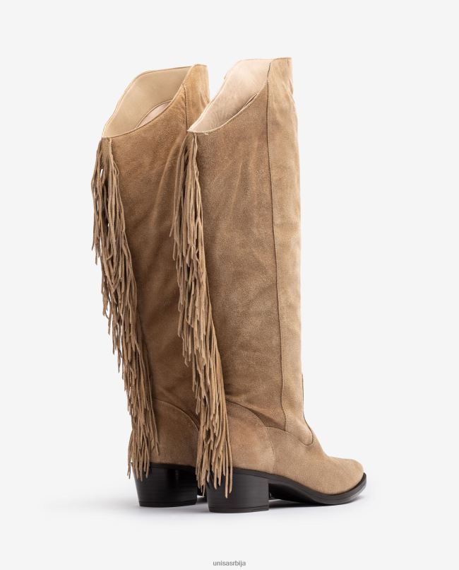 <спан>чизме у каубојском стилу од антилопа са ресицама на задњој страни чизме. Потпетица од 5 цм и лаган, флексибилан и неклизајући ђон. тренд који је нашао своју нишу у новој колекцији Униса.спан>