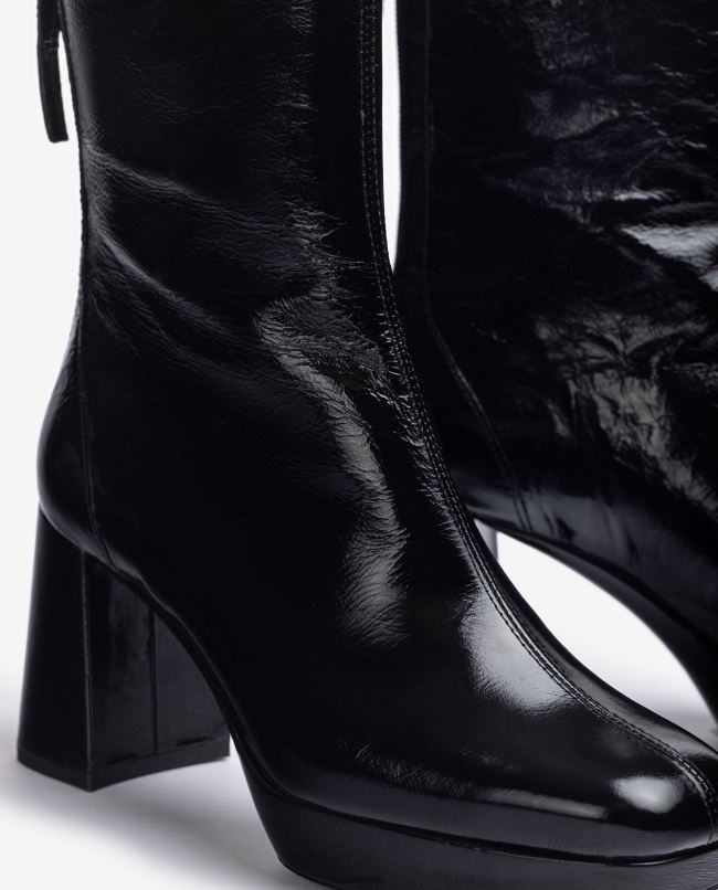 <спан>Глежњача са четвртастим прстима од наборане лакиране коже. патент затварач на леђима и средишњи шав на предњој страни.платформа од 2,5 цм и пета од 8 цм. лаган, флексибилан, неклизајући гумени ђон. суштински дизајн за Униса жену.спан>