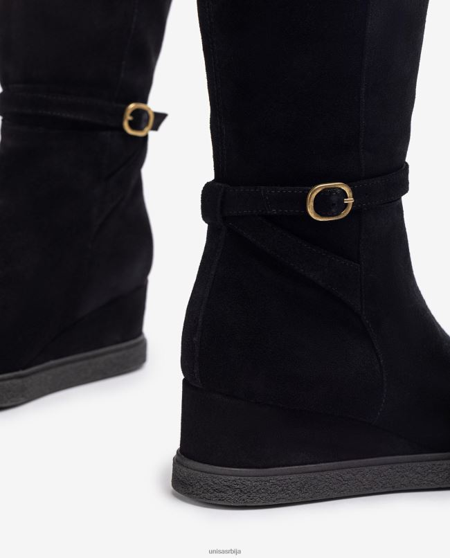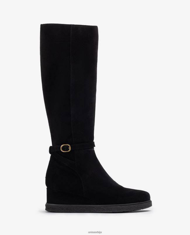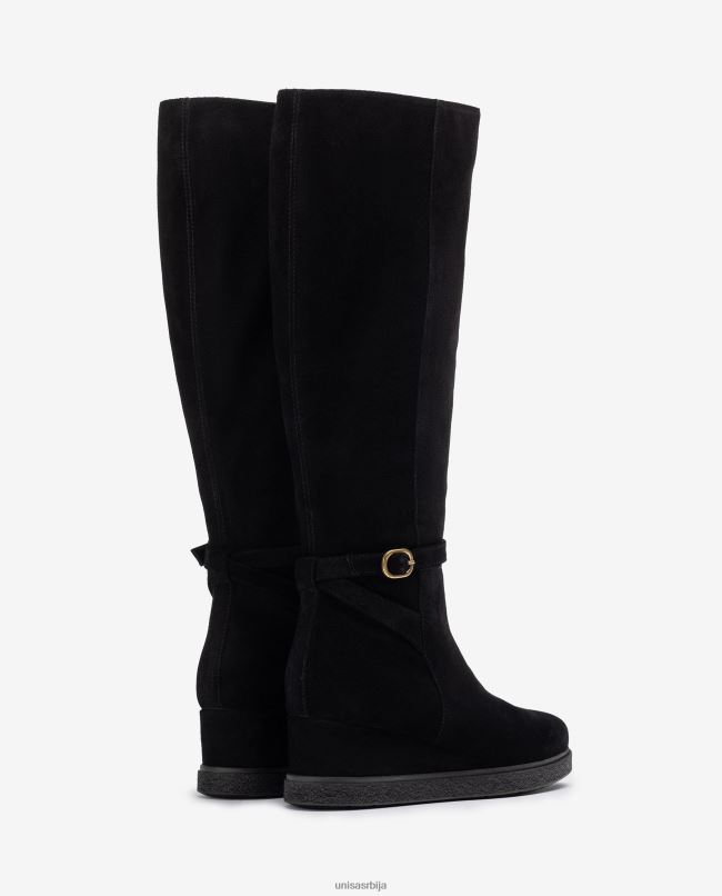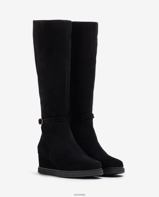 Unisa клинци црн чизма од антилоп високе осовине са клином и неклизајућим гуменим ђоном T6V601071